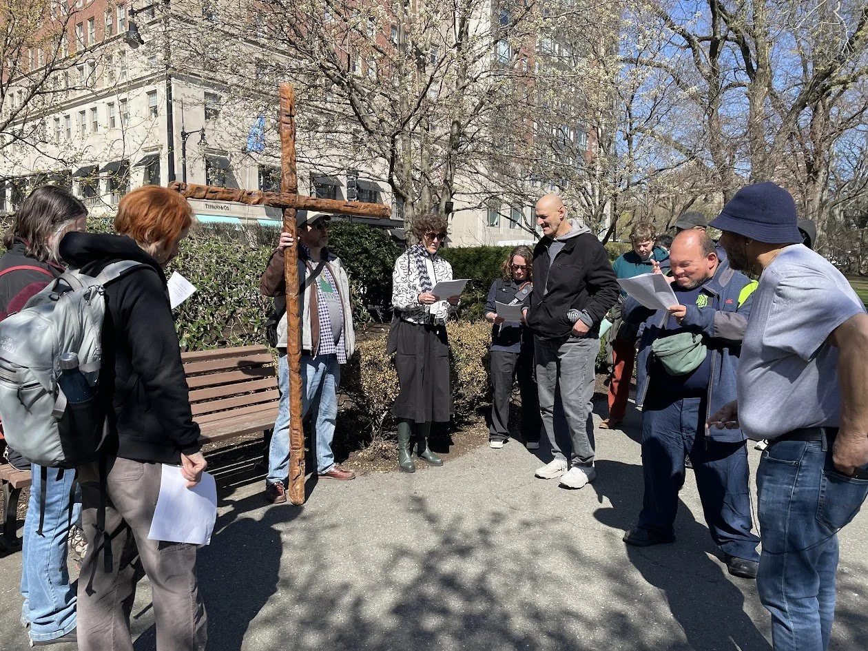 We gather every Sunday at 12:30 p.m. for outdoor worship by the Brewer Fountain on Boston Common. It is a lively service and includes scripture reflection by the minister, as well as by the congregation. We pray, celebrate birthdays, share Communion, and SING! We share food for our bodies as well as, from God’s table, our spirits. Guests include those from traditional congregations (or no church affiliation at all); tourists and other visitors; local residents; and additional volunteers who give their time, clothing, and other supplies.